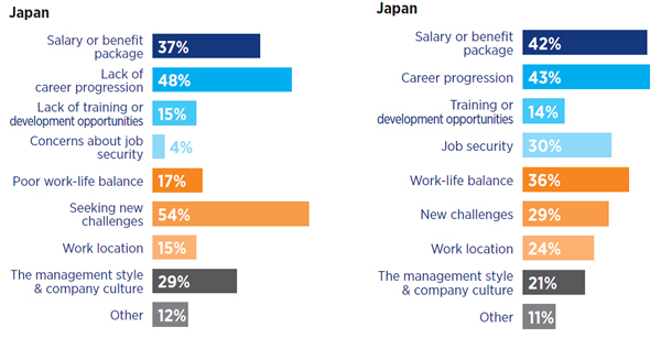 On a country level, work-life balance is the main reason people stay with an employer in China, Hong Kong and Singapore. In Japan career progression is the key to retention while in Malaysia it’s salary.