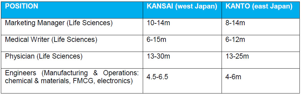 - For certain roles in Life Sciences and Manufacturing & Operations, salary ranges are slightly higher in Kansai when compared to the same positions in the Kanto region