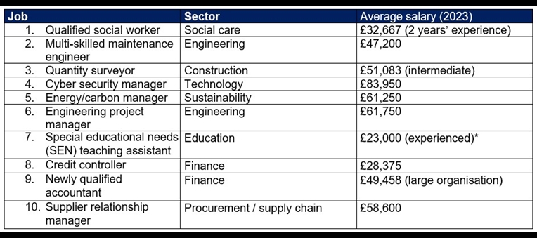 The roles featured on our list are at the top of employers wish lists up and down the country as many struggle not only to attract staff, but also to retain them due to high competition for skills.