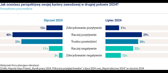 40% wciąż pozytywnie ocenia swoje perspektywy zawodowe, lecz odsetek pesymistów wzrósł do poziomu 34%.
