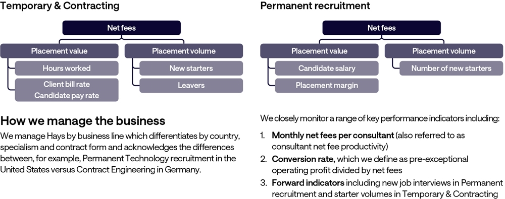 We manage Hays by business line which differentiates by country, specialism and contract form and acknowledges the differences between markets
