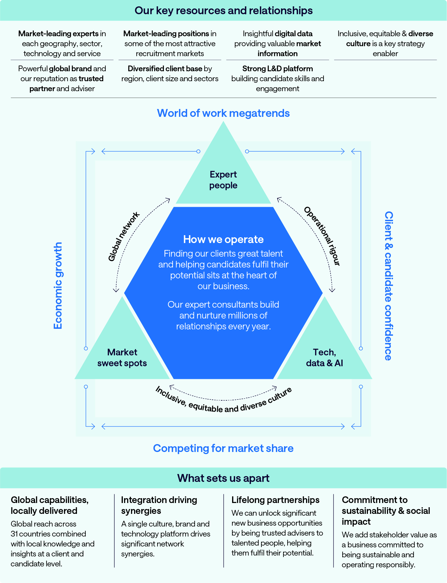 Our purpose is to benefit society by investing in lifelong partnerships that empower people and organisations to succeed. We achieve this via our business model, which is centred around solving our clients’ talent problems. Our services range from Contracting, Temp and Permanent recruitment to complex, integrated HR solutions.