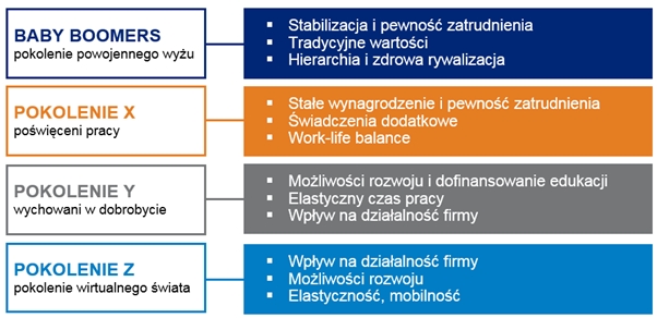 Podczas gdy najstarsi pracownicy wydają się być lojalnymi pracownikami, którzy są najbardziej przywiązani do firmy, to pokolenia Y (tzw. Milenialsi) i Z są mniej skłonne do poszukiwania pracodawcy na całe życie i chętniej oraz częściej zmieniają miejsce zatrudnienia. Różne badania oraz obserwacje ekspertów rynku pracy pokazują, że każde pokolenie pracowników ma inne priorytety zawodowe oraz oczekiwania względem zatrudniających firm. Biorąc pod uwagę, że potrzeby pracowników w innym wieku nierzadko zasadniczo się od siebie różnią, kluczowe staje się zbudowanie strategii budowania marki pracodawcy, której zróżnicowany przekaz będzie docierał do różnych grup wiekowych.